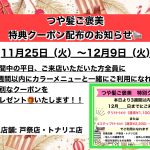2025年12月5日 / 最終更新日時 : 2025年12月5日 TOKYOスピードカラー NEWS つや髪ご褒美特典クーポン配布中!! ■ 12月限定:特別チケットプレゼント中!! 12月に9日までの平日にご来店いただいた方限定で 下記どちらかを無料 or 半額で選べる次回特典チケットをお渡ししています🎁 12月中のご来店日から3週間以内の平日チケットを […]